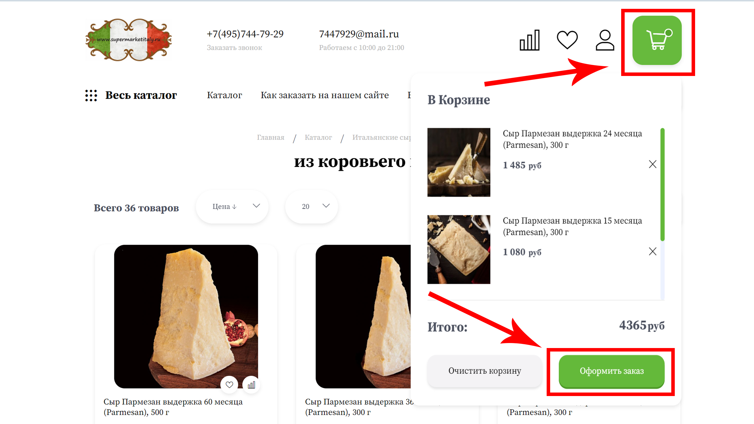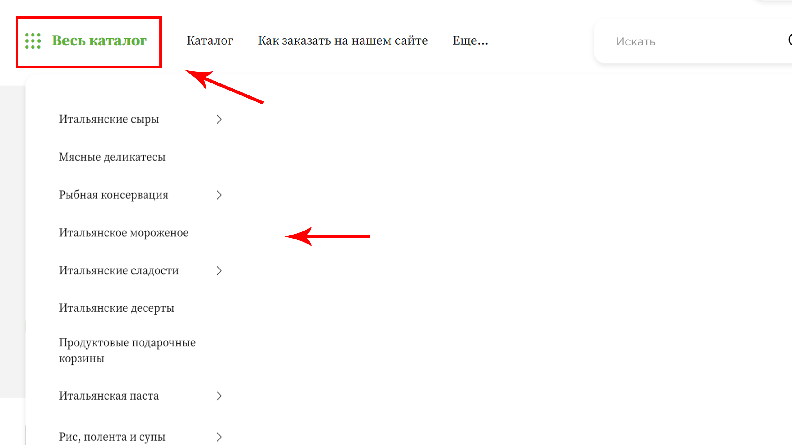 Перейдите в каталог и выберите интересующую Вас категорию. Например, итальянские сыры