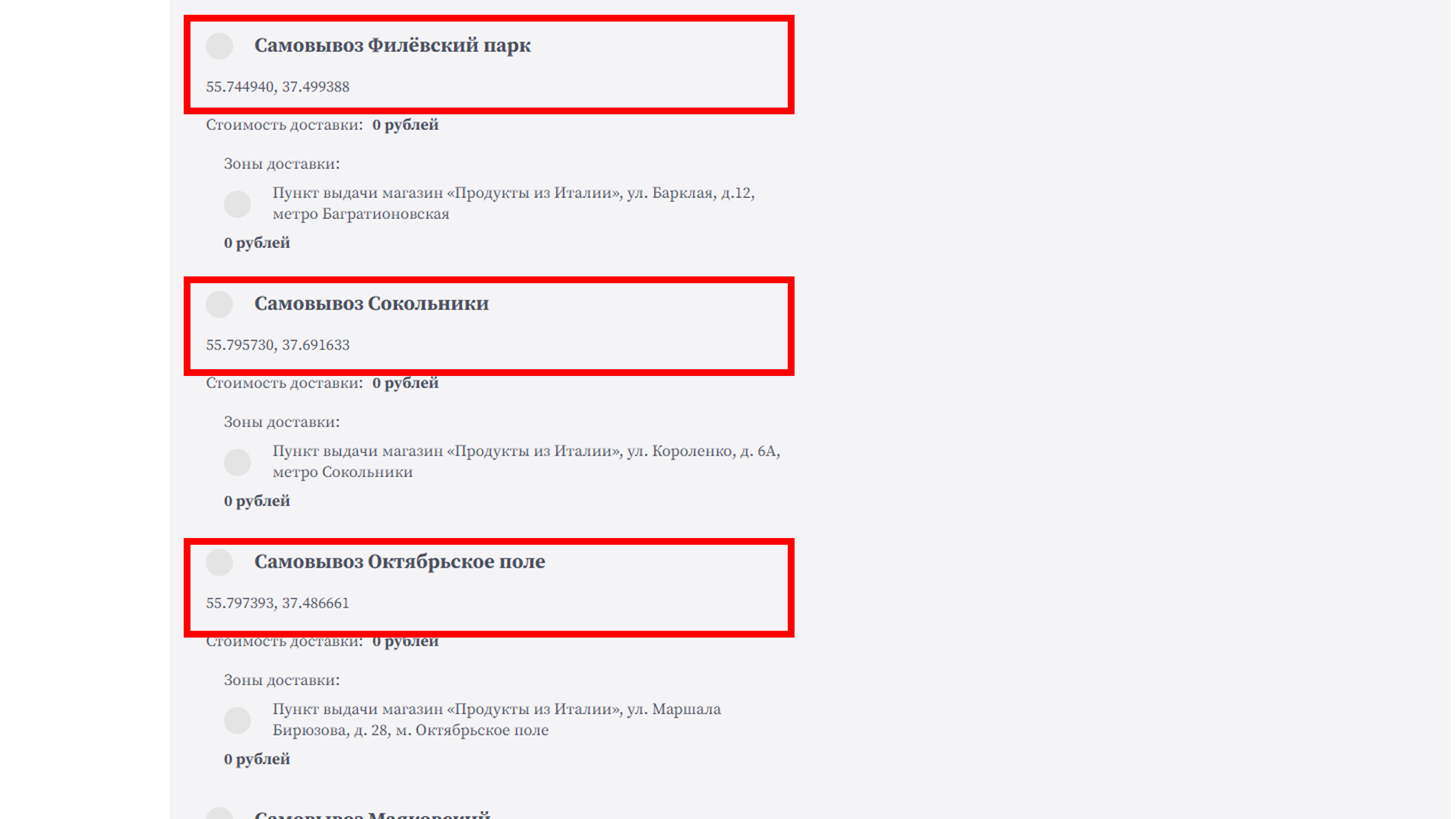 Кроме доставки, Вы можете оформить самовывоз из одного из наших магазинов в Москве. В указанное Вами время заказ будет готов: